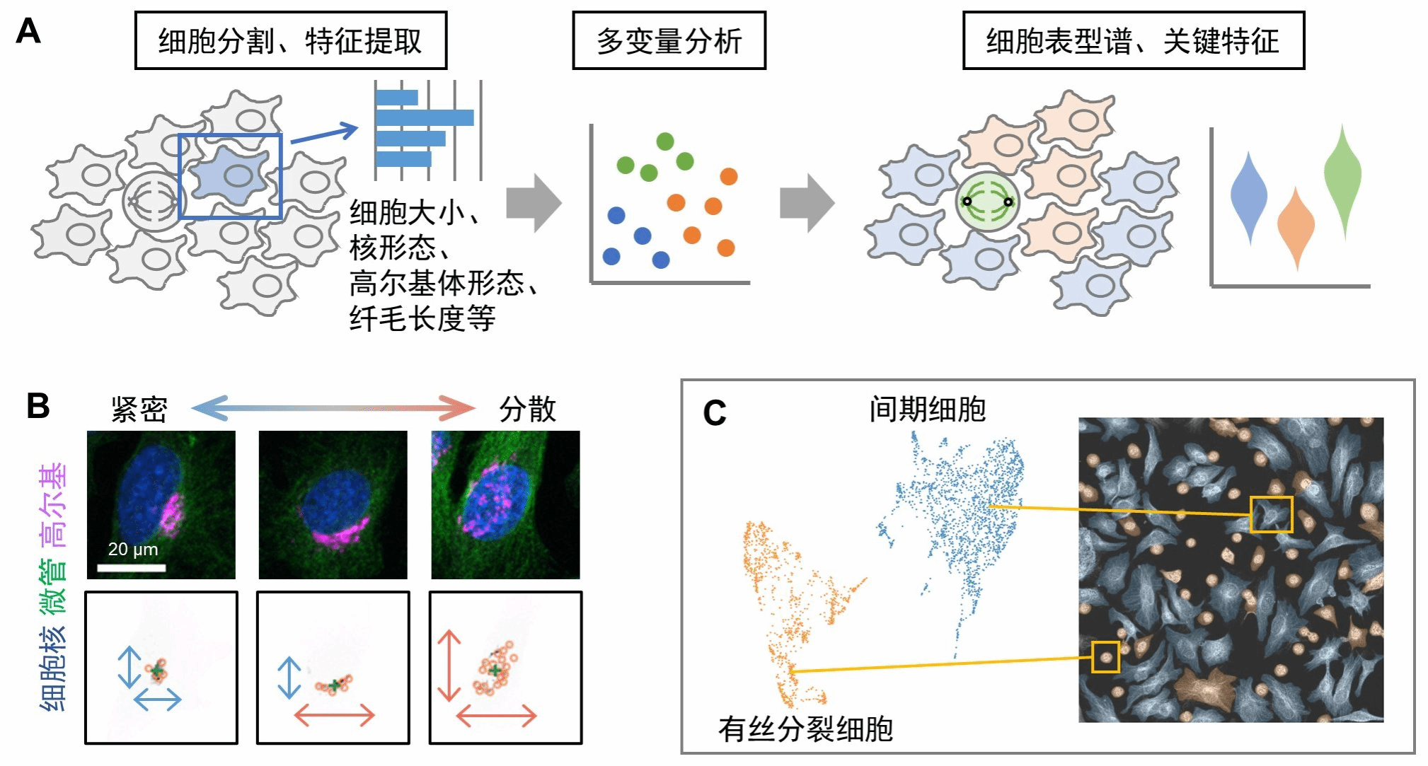 近日,我校动物科学技术学院、动物医学院、湖北洪山实验室Daisuke Takao教授团队在单细胞表型图谱的建立与应用研究中取得重要进展。该研究团队开发了一款基于人工智能的图像分析工具,并构建了一个系统、全面的哺乳动物细胞单细胞表型图谱数据库。应用该分析方法,研究团队识别出细胞周期进程中的关键细胞形态学特征,为阐明细胞增殖的调控机制提供了新的研究思路。相关研究成果以“High-Content Phenotyping Reveals Golgi Dynamics and Their Role in Cell Cycle Regulation”为题,发表在国际权威期刊Journal of Cell Biology上。