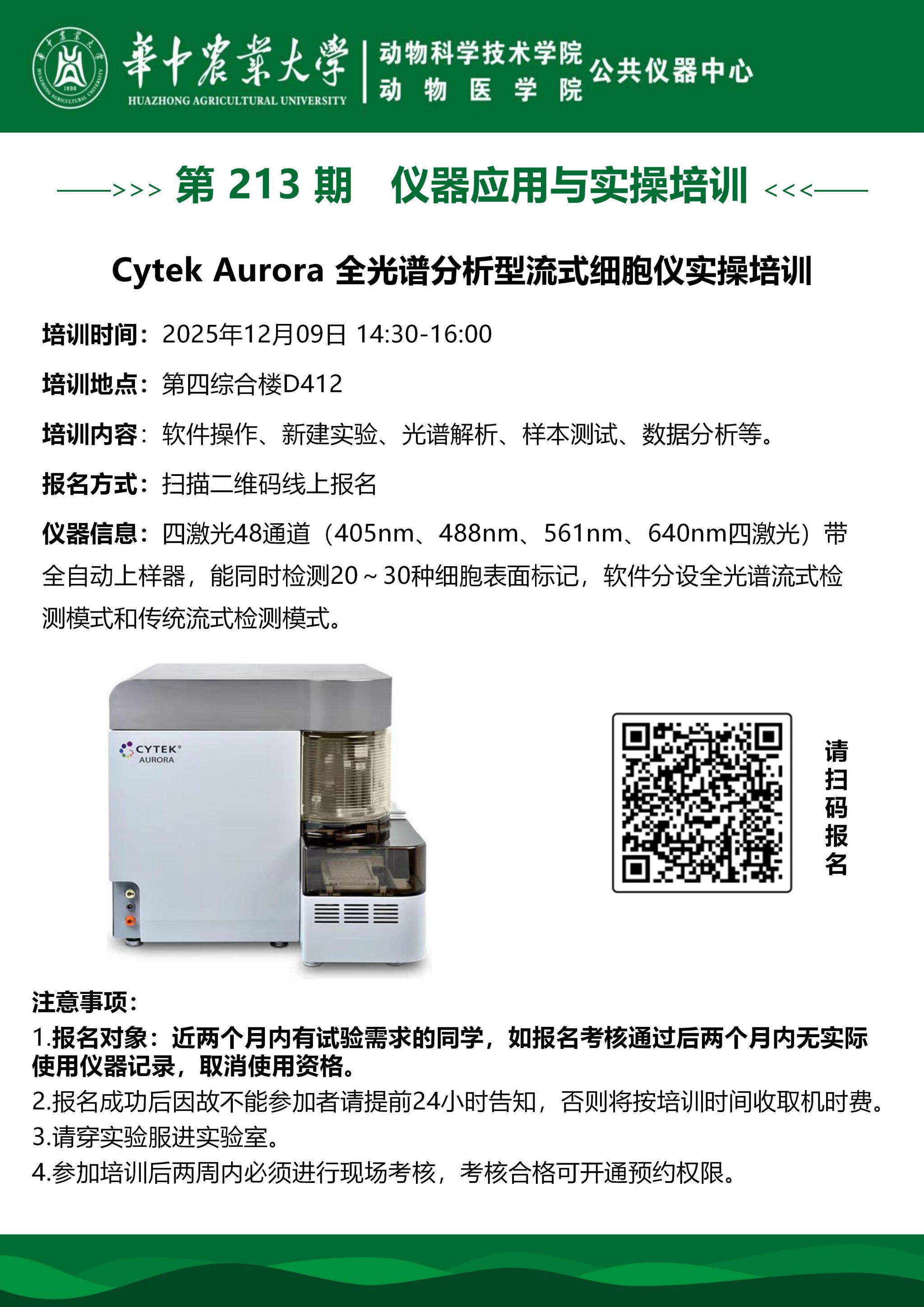 第 213 期 Cytek Aurora 全光谱分析型流式细胞仪实操培训
